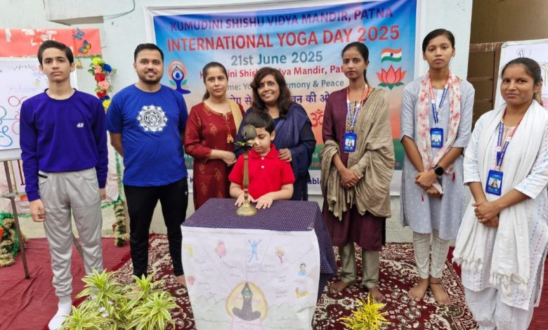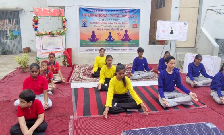 पटना,(अजीत) अनीसाबाद स्थित कुमुदिनी शिशु विद्या मंदिर में शुक्रवार को अंतर्राष्ट्रीय योग दिवस बड़े हर्षोल्लास एवं अनुशासन के साथ मनाया गया​। इस आयोजन का सफल संचालन कुमुदिनी एजुकेशनल कम चैरिटेबल ट्रस्ट के संयुक्त तत्वावधान में किया गया​।