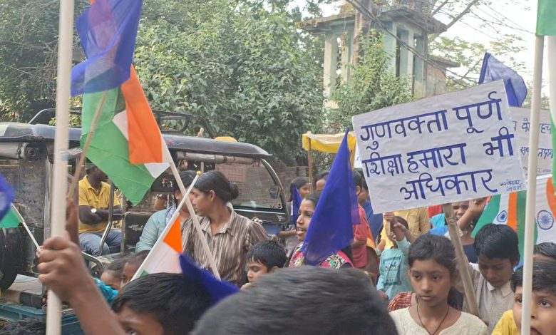 इसके पूर्व आंबेडकर भवन में डा भीमराव अंबेडकर के अदमाकद प्रतिमा पर माल्यार्पण अर्पित किया गया।वहीं रैली में बच्चे गुणवत्ता पूर्ण शिक्षा को लेकर नारेबाजी करतेनजरआए।