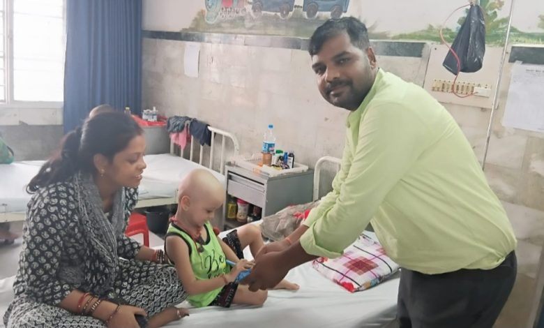 कैंसर पीड़ित बच्चों के बीच खाद्य सामग्री व स्टेशनरी का वितरण