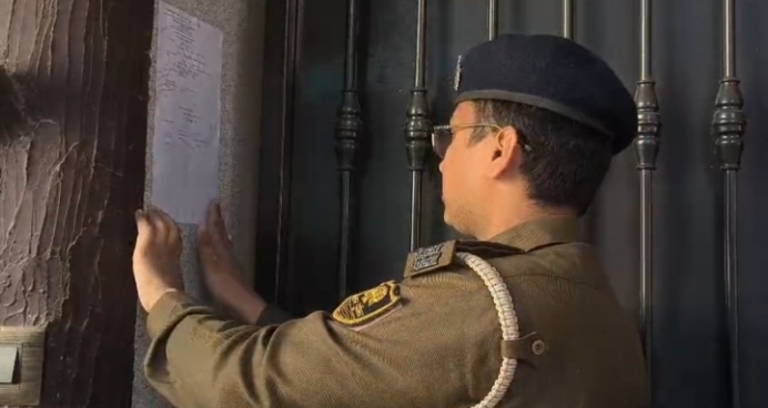 कोर्ट आदेश पर फरार आरोपी लव खुश शर्मा के घर इश्तिहार चिपकाया, डोल-नगाड़े के साथ सार्वजनिक घोषणा