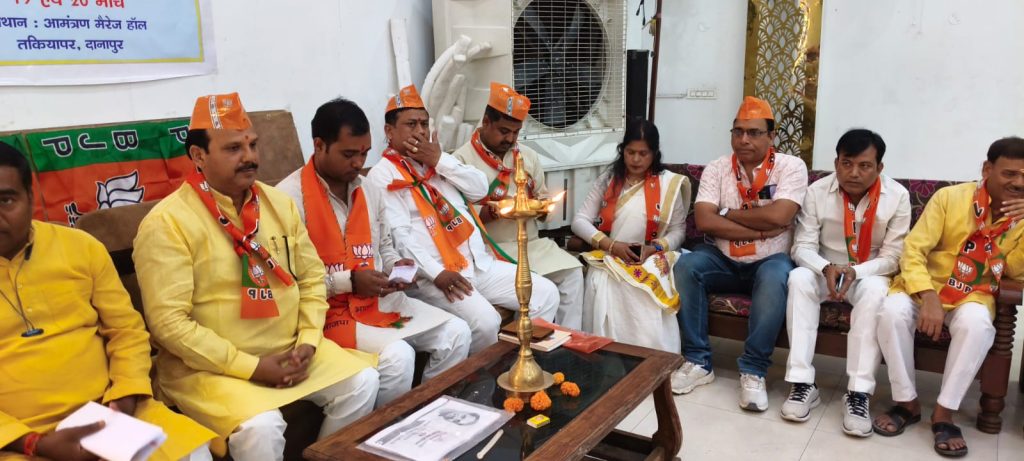 कार्यक्रम का विधिवत उद्घाटन दानापुर छावनी की नामित सदस्या आशा देवी, प्रदेश कार्य समिति सदस्य अभिनाश गुप्ता, पटना जिला ग्रामीण के जिला अध्यक्ष रजनीश कुमार, प्रभारी संजीव यादव, महामंत्री ब्रजेश सिंह एवं पवन तिवारी तथा विधानसभा संयोजक विजय कुमार भोटी ने संयुक्त रूप से दीप प्रज्वलित कर किया।