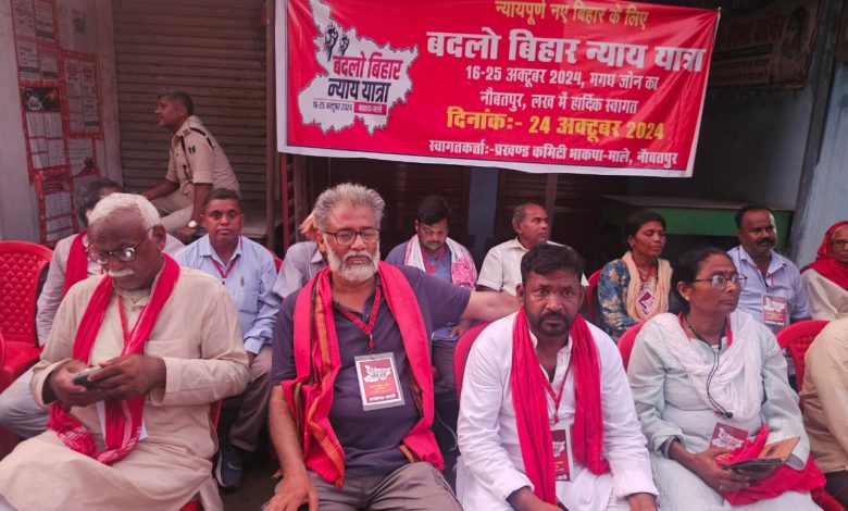 क्योंकि 95 लाख महा गरीब परिवार 6000 महीने की आमदनी पर जिंदा रहते हैं ऐसे परिवारों के साथ केंद्र और राज्य सरकार बिहार के न्यायपूर्ण जनता के साथ वादा खिलाफी कर रही है बदलो बिहार न्याय यात्रा आज 10 लाख स्कीम बर्करो के साथ महिला सशक्तिकरण की बात और बेटी बचाओ बेटी पढ़ाओ की बात करने वाली स्कीम बर्करो के साथ तुच्छ मानदेय पर खटाना घोर अन्याय है। इसके खिलाफ संपूर्णता में तमाम संघर्षों को समागम करते हुए 27 अक्टूबर को पटना के मिलर हाई स्कूल मैदान मे बदलो बिहार विशाल न्याय जनसम्मेलन में शिरकत करने का आह्वान किया।इस संवाद को बिहार विधान परिषद की सदस्या शशि यादव विधायक रामबली यादव विधायक महानंद सिंह विधायक गोपाल रविदास जवाहरलाल नेहरू विश्वविद्यालय छात्र संघ के अध्यक्ष धनंजय राज कमेटी के सदस्य रीता बरनवाल कमलेश कुमार जयप्रकाश पासवान श्रीनिवास शर्मा राकेश कुमार श्री कान्त दास कृपा नारायण सिंह महेश्वर शर्मा पप्पू शर्मा युवा नेता पंचम कुमार विष्णु कुमार शकर पासवान धर्म शिला देवी नागो देवी देवी सहित हजारों जनता पदयात्रा में शरीक हुए।