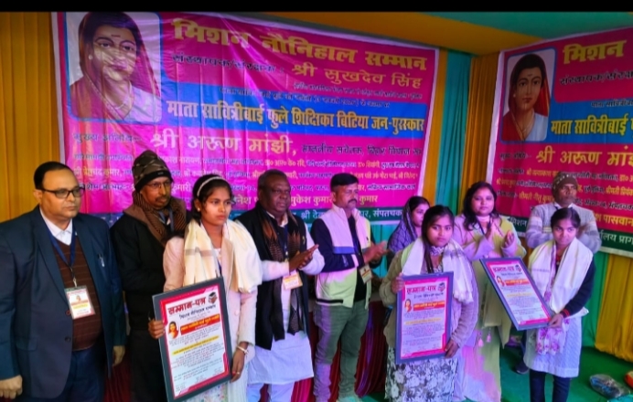 सावित्रीबाई फुले जयंती के अवसर पर संपतचक प्रखंड अंतर्गत एकतापुरम भोगीपुर में शिक्षा और सामाजिक बदलाव की मजबूत तस्वीर सामने आई, जहां दलित बच्चियों को पढ़ाते हुए खुद शिक्षिका बनी तीन दलित बेटियों को सम्मानित किया गया. यह सम्मान कार्यक्रम समाजसेवी सुखदेव सिंह के मार्गदर्शन में चल रहे मिशन नौनिहाल सम्मान के तहत आयोजित किया गया.