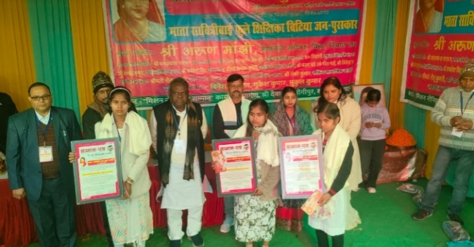 एकतापुरम भोगीपुर स्थित श्रीदेवाश्रय भवन परिसर में आयोजित माता सावित्रीबाई फुले शिक्षिका बिटिया जन-पुरस्कार समारोह में निःशुल्क शिक्षा के क्षेत्र में उत्कृष्ट योगदान देने वाली मिन्ता कुमारी पासवान, तृषा कुमारी पासवान और अंजली कुमारी पासवान को मंच पर बुलाकर बिहार विधानसभा में सचेतक और विधायक अरुण मांझी के हाथों सम्मानित किया गया.कार्यक्रम में अतिथियों का स्वागत सामाजिक कार्यकर्ता रॉकी कुमार और स्थानीय वार्ड पार्षद नीतू कुमारी ने किया. कार्यक्रम की शुरुआत एकता स्थल पर सरदार वल्लभभाई पटेल और दशरथ मांझी की प्रतिमा पर माल्यार्पण तथा माता सावित्रीबाई फुले की तस्वीर पर पुष्पांजलि अर्पित कर की गई. इस अवसर पर सामाजिक एकता, संघर्ष और शिक्षा के मूल्यों को याद किया गया.