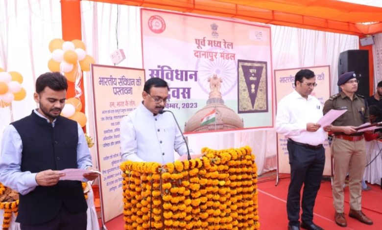 दानापुर मंडल रेल प्रबंधक जयंत कुमार चौधरी के नेतृत्व में अधिकारियों व कर्मचारियों द्वारा भारत के संविधान की उद्देशिका हम भारत के लोग भारत को एक सम्पूर्ण प्रभुत्व- सम्पन्न समाजवादी पंथनिरपेक्ष लोकतंत्रात्मक गणराज्य बनाने के लिए,