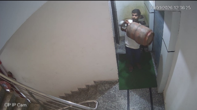 दिनदहाड़े डॉक्टर साहब का सिलेंडर चोरी, सीसीटीवी में साफ नजर आया चोर