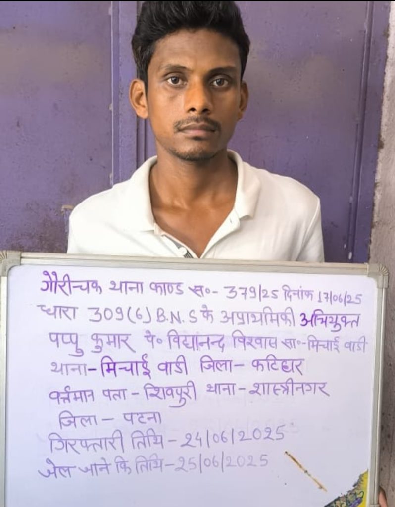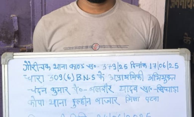 एस एस पी पटना कार्तिकेय शर्मा ने बताया क़ी मामले को गंभीरता से लेते हुए पुलिस ने कांड संख्या 379/25, दिनांक 17.06.2025, धारा 309(6) बीएनएस के तहत मामला दर्ज किया था।