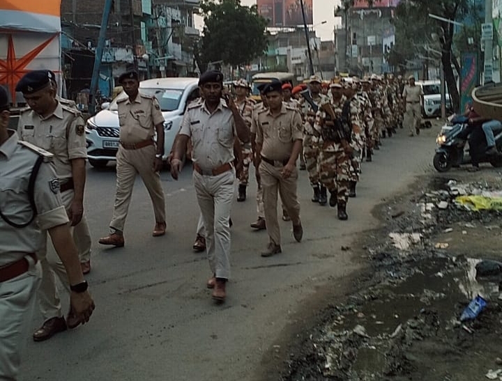 पुलिस का फ्लैग मार्च, छठ पर्व और विधानसभा चुनाव को लेकर सुरक्षा के पुख्ता इंतज़ाम