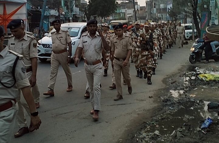 पुलिस का फ्लैग मार्च, छठ पर्व और विधानसभा चुनाव को लेकर सुरक्षा के पुख्ता इंतज़ाम