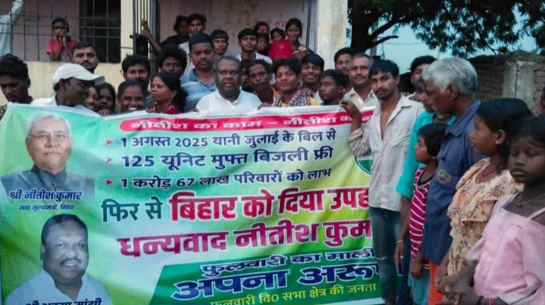 फुलवारी शरीफ. मुख्यमंत्री नीतीश कुमार द्वारा राज्य के सभी घरेलू उपभोक्ताओं को हर माह 125 यूनिट मुफ्त बिजली दिए जाने की घोषणा के बाद फुलवारी शरीफ के बेऊर-हसनपुरा महादलित टोले में गुरुवार को उत्सव जैसा माहौल देखने को मिला. इस फैसले से प्रभावित स्थानीय लोगों ने मिठाइयाँ बाँटकर खुशी जताई और सरकार के प्रति आभार प्रकट किया।