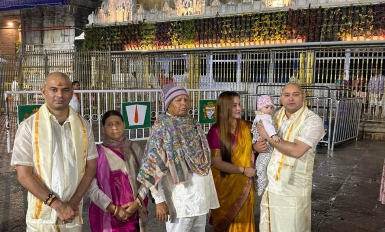 उपमुख्यमंत्री तेजस्वी यादव की शादी की सालगिरह के विशेष दिन पर उनकी बेटी कात्यायनी का मुंडन संस्कार भी तिरुपति बालाजी मंदिर में संपन्न हुआ।
