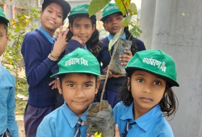 राष्ट्रीय बालिका दिवस पर प्रखंड कॉलोनी प्राथमिक विद्यालय में बच्चों ने किया पौधा रोपण