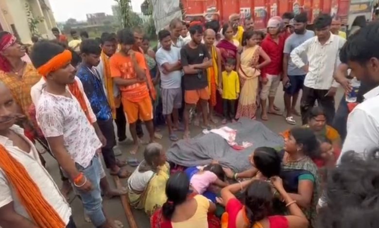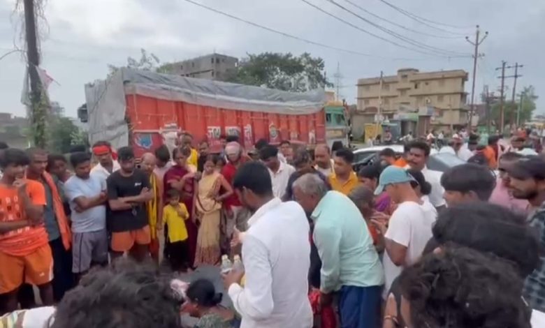 बैरिया बस स्टैंड के पास हाईवा ट्रक ने चार कांवरियों को रौंदा, दो की मौत