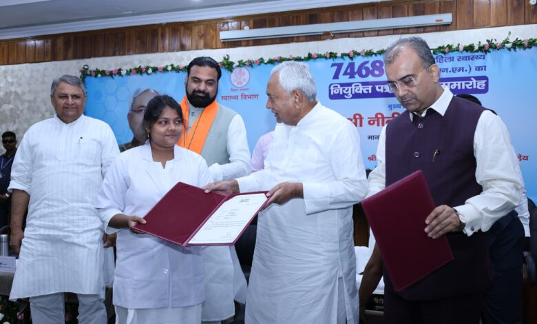 मुख्यमंत्री ने 7468 नवनियुक्त महिला स्वास्थ्य कार्यकर्ता (ए०एन०एम०) को प्रदान किया नियुक्ति पत्र
