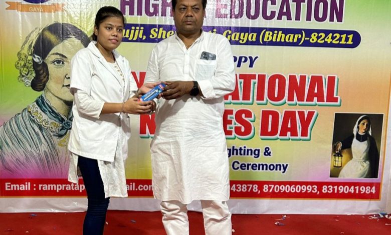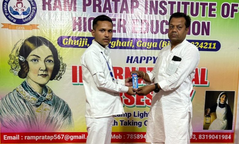 गया। गया के शेरघाटी घुज्जी में स्थित राम प्रताप इंस्टीट्यूट ऑफ हायर एजुकेशन मे इंटरनेशनल मे इंटरनेशनल नर्सेज दिवस बड़े धूमधाम के साथ मनाया गया।