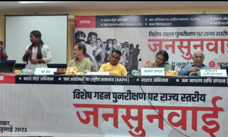 वोटर लिस्ट विशेष पुनरीक्षण अभियान के खिलाफ पटना में राज्य स्तरीय जनसुनवाई ग्रामीणों ने गिनाई परेशानियां