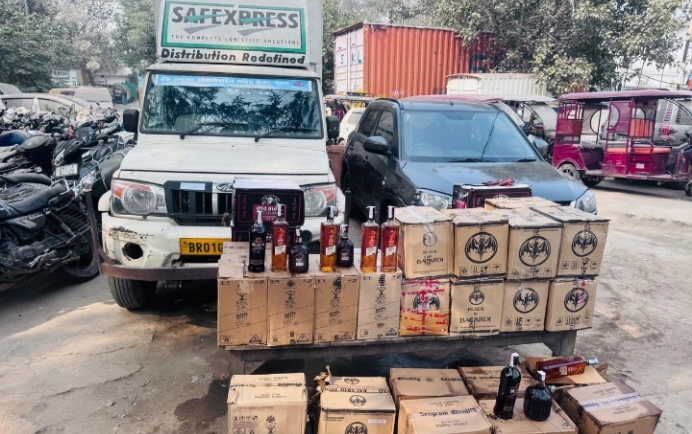 फुलवारी शरीफ: रामकृष्णानगर थाना क्षेत्र के जकरियापुर स्थित ओम गेस्ट हाउस के पास शुक्रवार सुबह मध् निषेध विभाग की टीम ने गुप्त सूचना के आधार पर बड़ी कार्रवाई करते हुए विदेशी शराब की तस्करी का खुलासा किया है. गेस्ट हाउस के गोदाम और दो वाहनों से भारी मात्रा में विदेशी शराब बरामद की गई, जबकि चार तस्करों को मौके से गिरफ्तार किया गया.