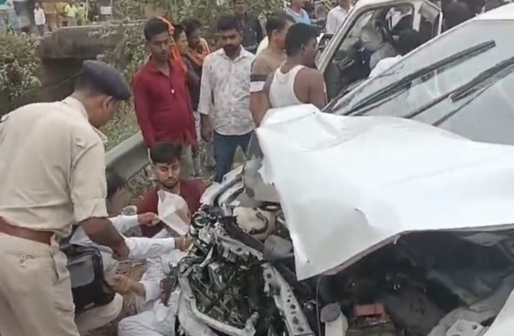 फुलवारी शरीफ: पटना-औरंगाबाद मार्ग स्थित नेशनल हाईवे 139 पर मंगलवार को उस वक्त अफरा-तफरी और चीख-पुकार मच गई जब जानीपुर थाना क्षेत्र के नकटी भवानी मंदिर के पास स्कॉर्पियो और इनोवा कार के बीच आमने-सामने की भीषण टक्कर हो गई. तेज रफ्तार में हुई इस जोरदार भिड़ंत में दोनों गाड़ियों के अगले हिस्से पूरी तरह क्षतिग्रस्त हो गए और वाहन के अंदर बैठे लोग बुरी तरह फंस गए. हादसे में पांच लोगों के घायल होने की सूचना है, जिनमें कुछ की हालत गंभीर बताई जा रही है.