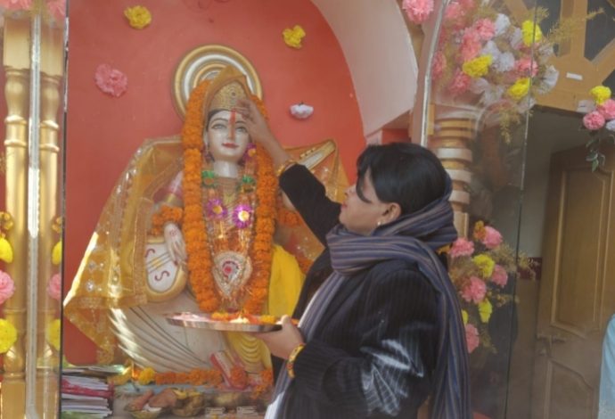 सुबह से ही स्कूल परिसर में छात्र-छात्राएं और स्थानीय लोग मां सरस्वती से ज्ञान और विद्या की प्राप्ति के लिए पूजा-अर्चना करते नजर आए.