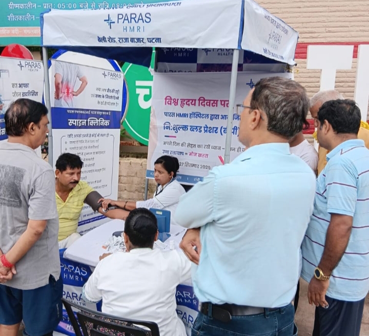 फुलवारी शरीफ.विश्व हृदय दिवस के मौके पर पारस एचएमआरआई अस्पताल की ओर से राजधानी पटना सहित कई स्थानों पर निःशुल्क ब्लड प्रेशर जांच शिविर का आयोजन किया गया. इस पहल के तहत कुल 2207 लोगों की जांच की गई, जिनमें से 534 लोगों में उच्च रक्तचाप की समस्या पाई गई.