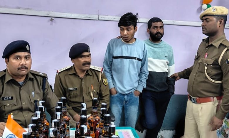 25 बोतल अंग्रेजी शराब के साथ दो तस्कर गिरफ्तार