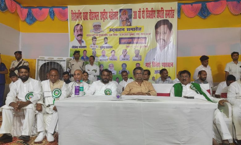 फुलवारी शरीफ । पटना के फुलवारी शरीफ के चौहरमल नगर मे 38 वा शिरोमणि बाबा चौहरमल महोत्सव का उद्घाटन मंत्री आलोक मेहता पूर्व मंत्री श्याम रजक पूर्व मंत्री शिवचंद्र राम पूर्व विधान पार्षद आजाद गांधी अध्यक्ष दिनेश पासवान ने संयुक्त रूप से दीप जलाकर किया।इस मौके पर शिरोमणि बाबा चौहरमल स्मारक निर्माण समिति के अध्यक्ष दिनेश पासवान ने महोत्सव मे पहुंचने पर नेताओ का स्वागत तलवार व पगड़ी भेंटकर सम्मानित किया।