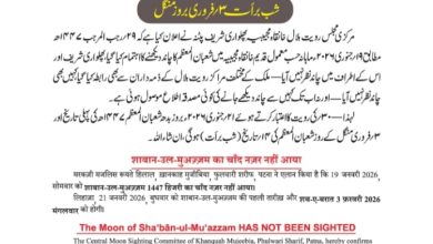 शाबान-उल-मुअज़्ज़म का चांद नहीं आया नजर. फुलवारी शरीफ. इस्लामी माह शाबान-उल-मुअज़्ज़म 1447 हिजरी का चांद सोमवार को फुलवारी शरीफ सहित…