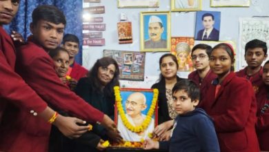 कुमुदिनी शिशु विद्या मंदिर में महात्मा गांधी के शहादत दिवस पर बच्चों ने दि पुष्पांजलि