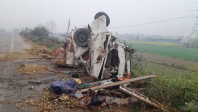 कोहरे में कहर, मवेशी लदी पिकअप पलटी, पिता-पुत्र की मौत, गाय-भैंस भी नहीं बची