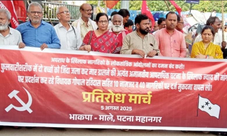 फुलवारी स्टेशन से निकला विरोध मार्च. माले विधायकों पर फर्जी मुकदमे के खिलाफ राज्यव्यापी प्रतिवाद. फुलवारी शरीफ. अजीत। भाकपा (माले)…