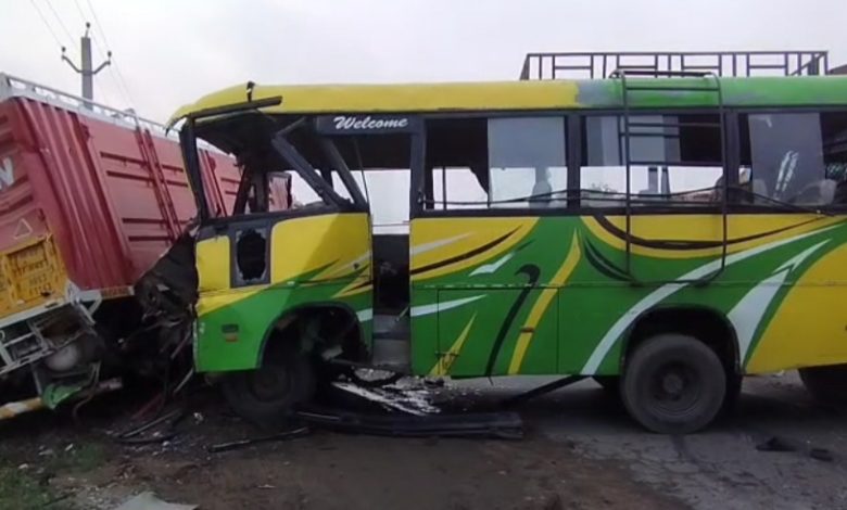 तेज रफ्तार से आ रही ट्रक ने सवारी बस मे मारी टक्कर तीन घायल