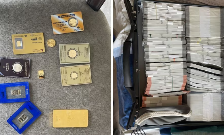 - 1,900 अमेरिकी डॉलर, 540 ग्राम सोना और 1. 5 किलोग्राम सोने के आभूषण जब्त
