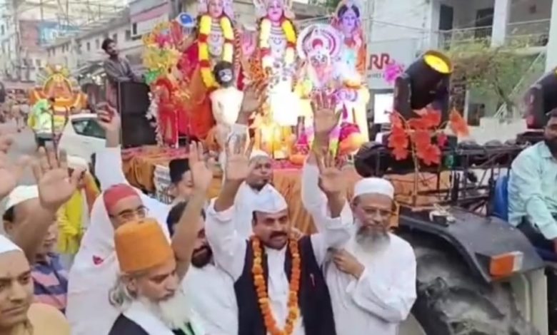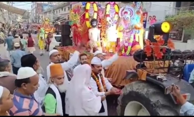रामनवमी शोभा यात्रा पर मुस्लिम समुदाय के लोगों ने बरसाया गुलाब के फूल