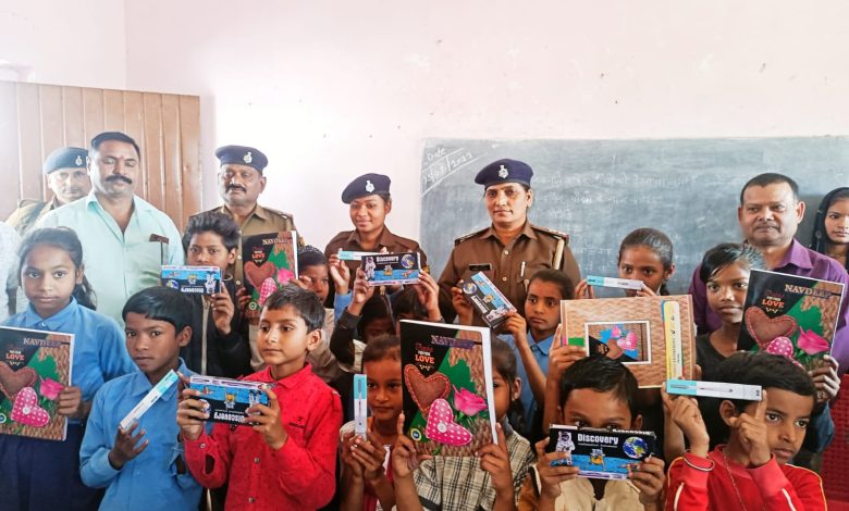 नेऊरा पुलिस जागरूकता अभियान कर बच्चों को बांटी पाठ्य सामग्री