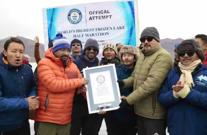 लद्दाख ने बनाया गिनीज वर्ल्ड रिकॉर्ड : 13,862 फीट की ऊंचाई और बर्फ से जमी पेंगोंग झील पर 21 किमी की दौड़