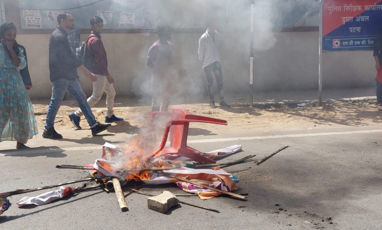 आक्रोशित लोगो ने पुलिस की कार्यशैली पर सवाल उठाते हुए बेली रोड पर लाठी डंडा लेकर टूट पड़े और दर्जनों वाहनो मे तोड़फोड़ मचा दिया। कई लोगो को दौरा दौरा कर पिटाई भी की गई। इस दौरान डुमरा अंचल चौकी पर मौजूद ट्रैफिक पुलिस वाले जवान भाग खड़े हुए । काफी देर तक सड़क पर अफरा-तफरी के बीच शास्त्री नगर थाना ध्यक्ष रामाशंकर सिंह दलबल के साथ भारी संख्या मे पुलिस फोर्स लेकर पहुंचे और बवाल कर रहे लोगों पर लाठियां भास्कर खदेड़ दिया। वही इससे पहले सम्राट चौधरी के आगमन को लेकर शेखपुरा मोड़ पर बीजेपी के मंच भी बनाया गया था ।उपद्रव मचा रहे लोगो ने उस मंच को भी तोड़ दिया । साथ ही कई बसो कार एव अन्य वाहन के शीशे तोड़ डाले । आक्रोशित लोगो ने सड़क को जाम कर आगजनी की। इतना ही नहीं टायर कुर्सी टेबुल के साथ साथ पोस्टर को भी जलाया गया ।